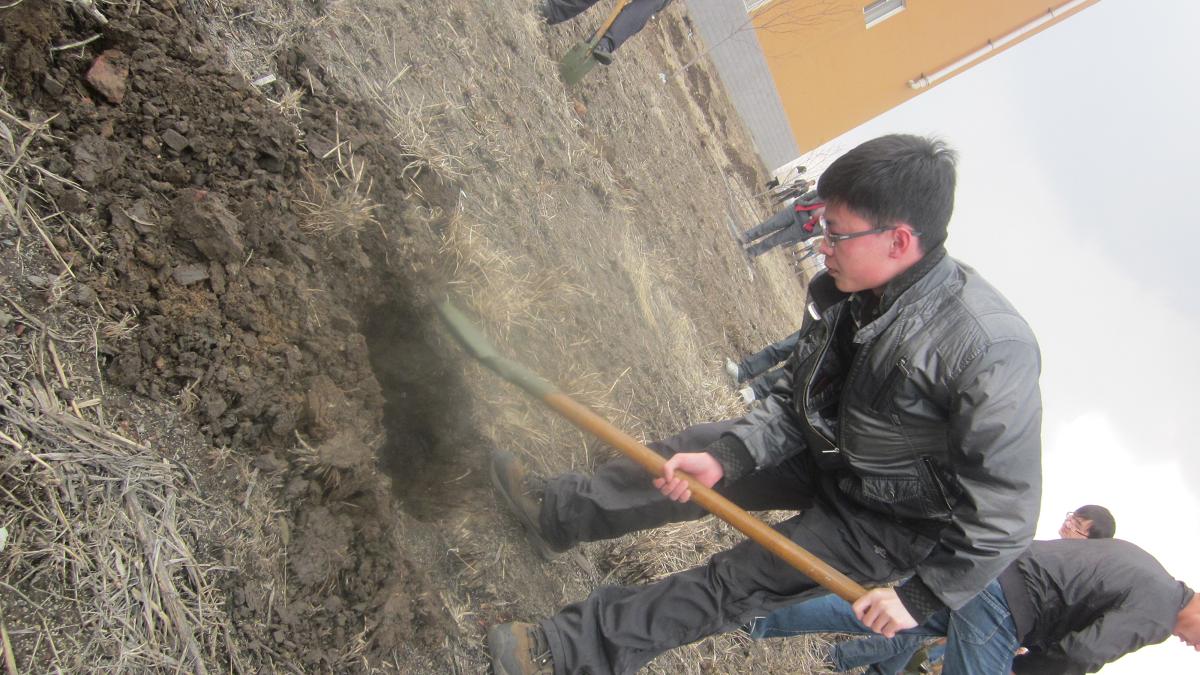 中午12点30分,在公司党委副书记曹伟光和辅导员肖建荣的亲自带领下,同学们乘车来到本次活动目的地太阳集团tyc539农业实验基地。基地党总支书记董怀智对同学们的到来表示热烈欢迎,感谢毕业生为基地的绿化做贡献,讲解了植树要求,还提醒同学们注意安全。在基地副主任王文众的指导下,同学们挽起裤脚、挥动铁锹和镐头,劳动场面热烈活泼。同学们还认真地将建筑垃圾与回填土进行了分离。女生扶苗、男生填土,形成了默契和谐的劳动氛围。