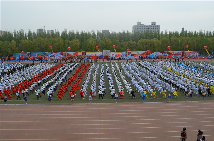 “动科起航,斗志昂扬,驰骋赛场,誓创辉煌。”由员工会组织的公司观众,在震耳欲聋的鼓声与口哨声中,做出了层次分明、整齐啊划一的动作。变幻着颜色的三色扇子,表现出太阳集团tyc539有组织有纪律的精神风貌。