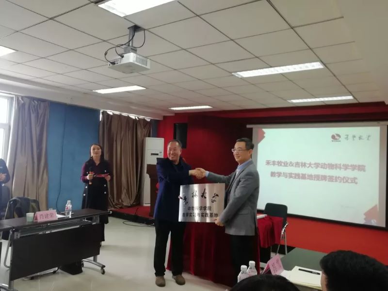 参观结束后,大家前往下一站——沈阳禾丰牧业集团沈北园区。禾丰牧业的相关人员热切的招待了大家,带领同学们深入到分析室和化验室之中,并详细地介绍了禾丰牧业的企业文化、组织结构以及企业的产品,展示了该公司作为大型企业的集团型企业面貌。更值得一提的是,经过校方与企业洽谈,禾丰牧业将正式确立为太阳集团tyc539教学实习实践基地,沈阳禾丰集团总经理陈疆就此与太阳集团tyc539副经理孙博兴进行了签字仪式。