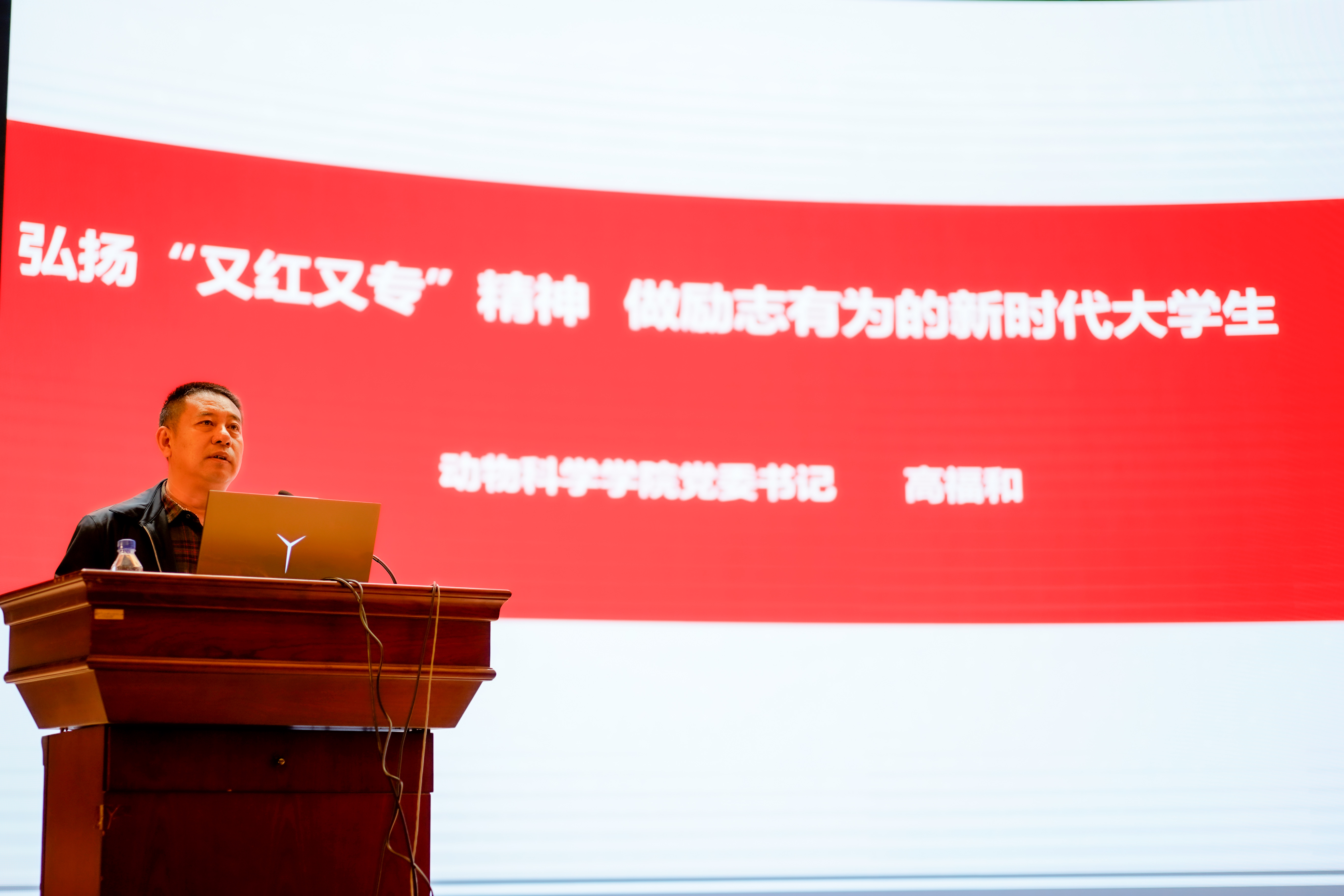在课程的第二部分,高福和从做人、做事、做学问三个角度进行讲授。他讲到,在做人方面,做“白求恩式”的人、做“黄大年式”的人、做祖国需要的人。在做事方面,一是要立长志、不能常立志;二是要青春异彩、不懈奋斗;三是要持续奋进、拒绝懈怠。在做学问方面,一是励志奋斗,为祖国的强大发奋努力读书;二是要对所学专业的正确认知,从“新农科”视角认识学科专业,真正做到知农、爱农、兴农;三是要注重知识储备,兼顾公共基础课和专业课学习。四是要重视创新创造,积极参与到老员工创新创业计划、学术科研项目等活动中。