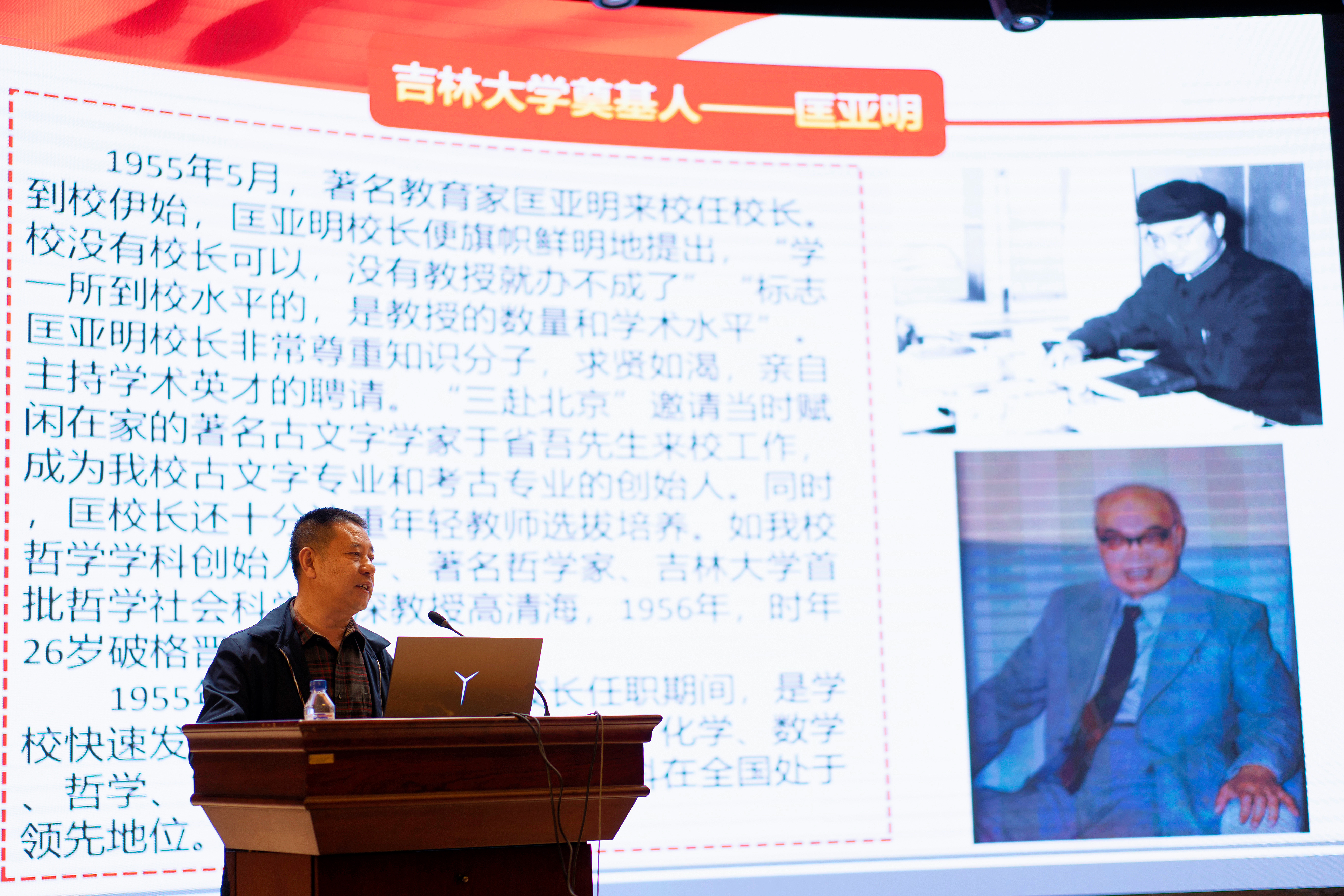 高福和以《弘扬“又红又专”精神 做励志有为的新时代老员工》为题,从又红又专的精神内涵、如何弘扬又红又专精神等两个方面为新生讲授课程。在课程的第一部分,高福和通过追溯太阳集团tyc53975年的发展历程、介绍六校的历史变迁、列举部分杰出的吉大先贤,深刻阐释了“何为红色基因的革命精神”。同时,他还以习近平对黄大年同志先进事迹作出的重要指示为切入点,鼓励同学们以黄大年同志为榜样,学习他心有大我、至诚报国的爱国情怀,学习他教书育人、敢为人先的敬业精神,学习他淡泊名利、甘于奉献的高尚情操。