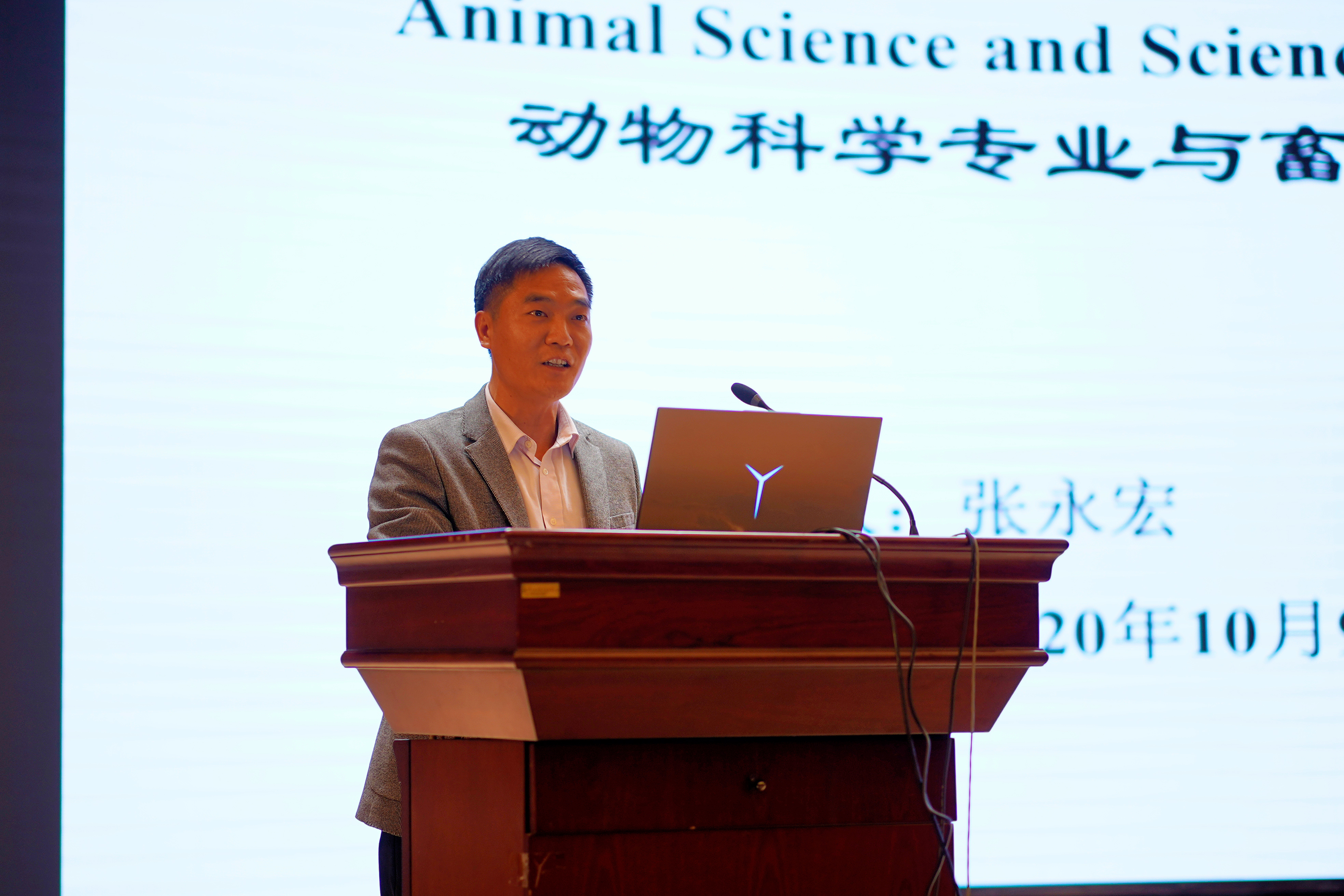 动物科学系主任张永宏以动物科学专业的基本概念为切入点,从学科历史、培养目标、就业方向、老员工创新实验、教学实习基地建设等方面介绍了专业概况。