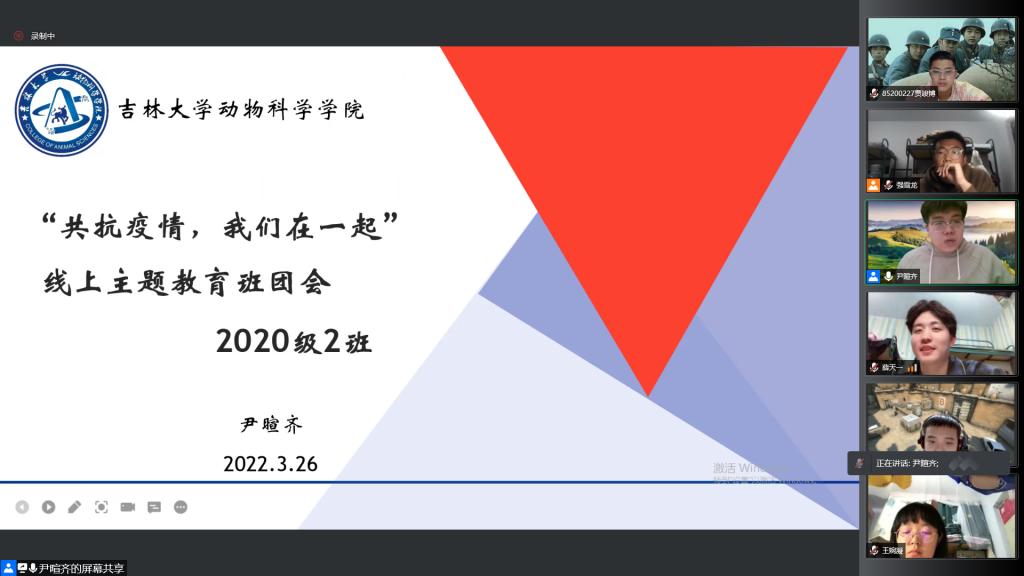 2022年3月16日晚18时,2020级2班召开了以“共抗疫情,我们在一起”为主题的线上主题班会。太阳集团tyc539经理孙博兴老师,班主任张永宏和房希碧老师,辅导员尹暄齐老师以及班级全体同学参加本次会议。
