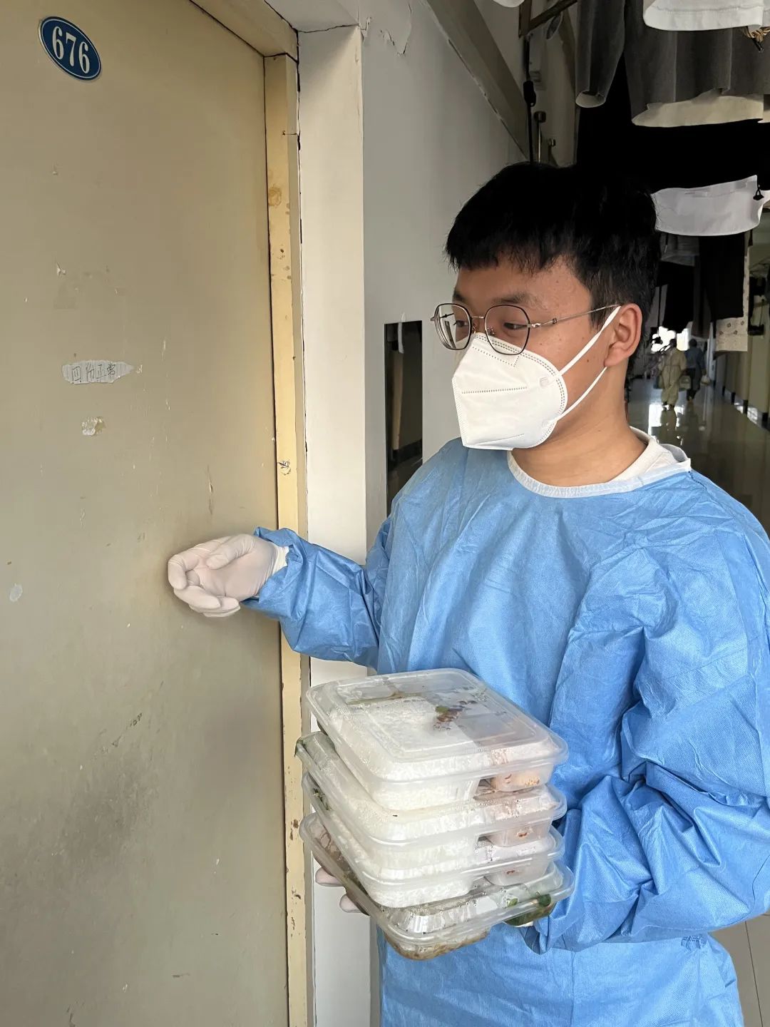 中共党员,2021级硕士生,目前担任四公寓志愿者,负责发放三楼各寝室一日三餐以及抗原自测试剂盒。