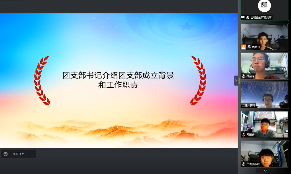 疫情严重,为了应对严峻的疫情防控形势,公司实行封闭管理,为国家抗击疫情贡献青春力量。根据《关于疫情防控期间成立团支部的通知》,切实发挥共青团组织在防疫控疫工作中的战斗堡垒作用及团员的先锋模范作用,突出特殊时期团支部的组织凝聚力,太阳集团tyc539依托于南苑六公寓所有男生团员成立公司第一临时团支部。2022年3月27日星期日晚七点,公司第一临时团支部成立大会在线上召开。