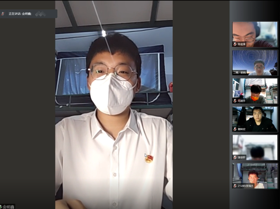 随后,宣传委员赵佳明带领大家重温入团誓词。大家举起右臂,郑重承诺,誓词铿锵有力,将大家抗疫必胜的决心表达出来,为抗击疫情凝聚起吉大力量。