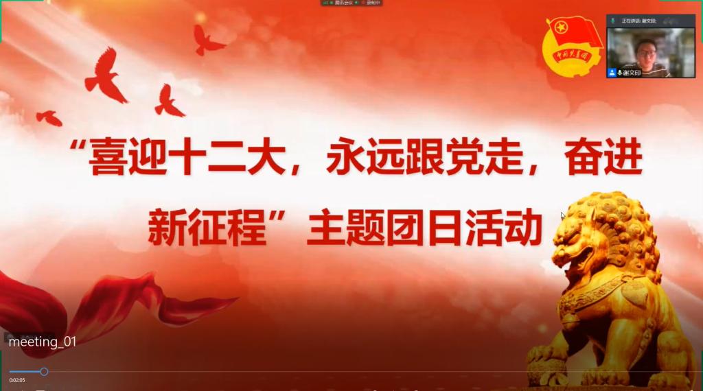 为响应团中央号召,学习宣传贯彻习近平总书记关于疫情防控工作的重要讲话重要指示精神,贯彻落实校院两级疫情防控工作部署要求,保证广大青少年每日作息健康,团结青少年坚定跟党走、建功新时代。公司第三临时团支部于2022年4月10日下午5时依托腾讯会议开展“喜迎二十大、永远跟党走、奋进新征程”主题团日活动,活动由团支书谢文印主持。