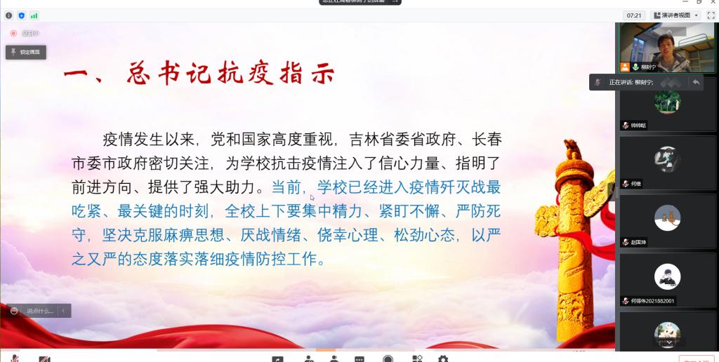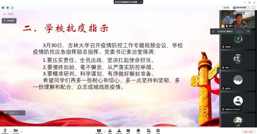 疫情发生以来,党和国家高度重视,吉林省委省政府、长春市委市政府密切关注,为公司抗击疫情注入了信心力量、指明了前进方向、提供了强大助力。当前,公司已经进入疫情歼灭战最吃紧、最关键的时刻,全校上下正集中精力、紧盯不懈、严防死守,坚决克服麻痹思想、厌战情绪、侥幸心理、松劲心态,以严之又严的态度落实疫情防控工作。我们团支部内部要压实责任、坚决扛起使命担当;要毫不懈怠,从严落实防控举措;要科学安排,有序做好一切准备。本轮疫情以来,全校严格实行“应急封闭静态管理”已经20多天。全校师生为防疫工作付出了巨大努力,公司防疫工作基本平稳,并为省市疫情防控贡献了吉大力量。师生坚持线上授课,公司开课率非常高,希望同学认真学习。疫情之下,动科师生用积极的行动,将疫情对教学、科研等公司各项事业的影响降到了最低。