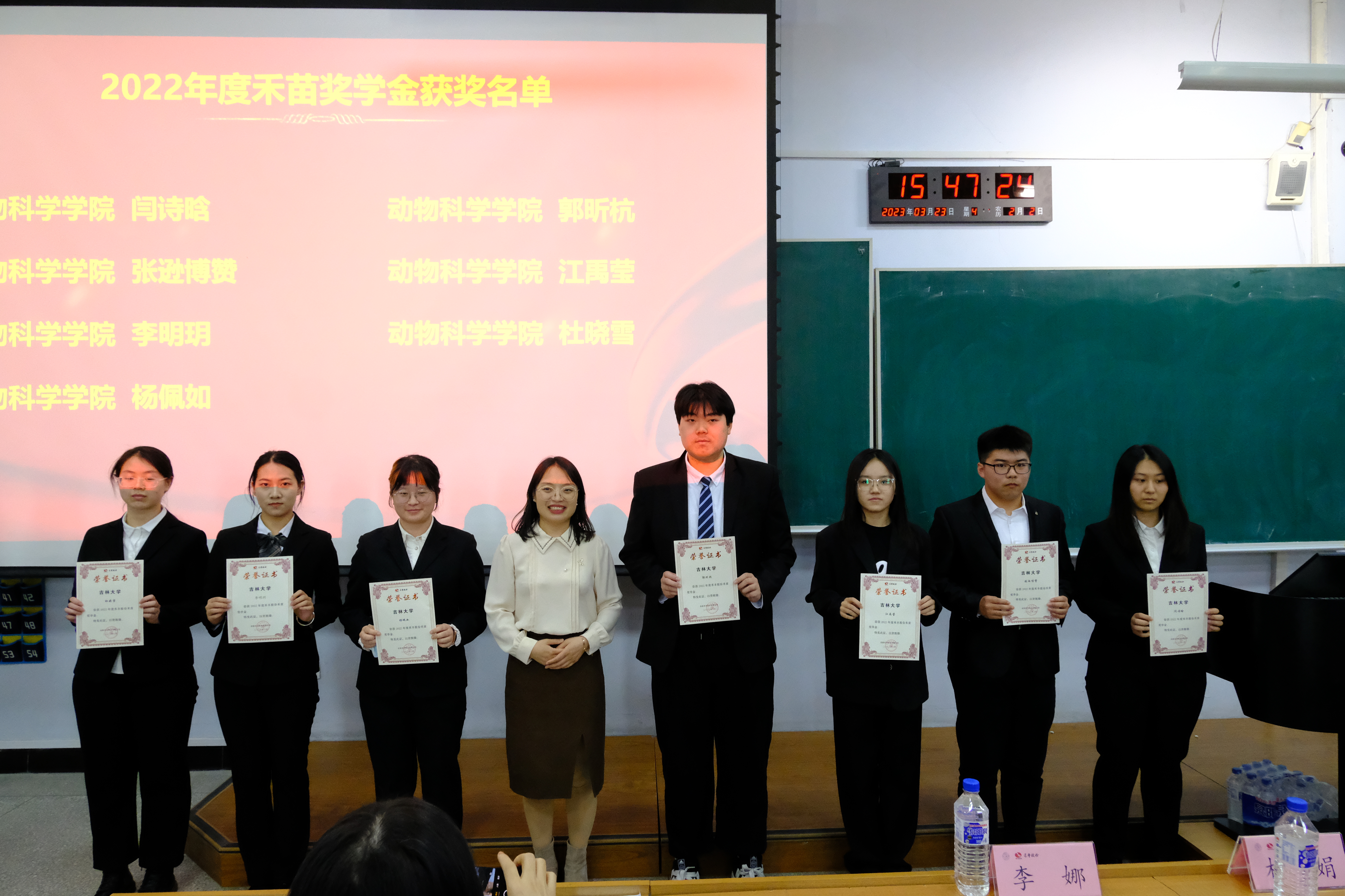 情系高校学子,聚焦农科人才,成就青年梦想。2023年3月23日下午,2022年度禾丰股份“金卫东董事长助学金”“禾苗奖学金”颁奖仪式暨校园招聘宣讲活动在和平校区科学讲堂400教室顺利举办。沈阳禾丰销售总经理刁秀镯、沈阳禾丰高级客户服务经理王雪、禾丰股份辽宁区区域招聘培训COE杜娟、太阳集团tyc539党委副书记肖建荣、动物医学公司党委副书记谭瑶,太阳集团tyc539和动物医学公司辅导员及员工代表参加本次活动。活动由2021级本科生王展同学主持。