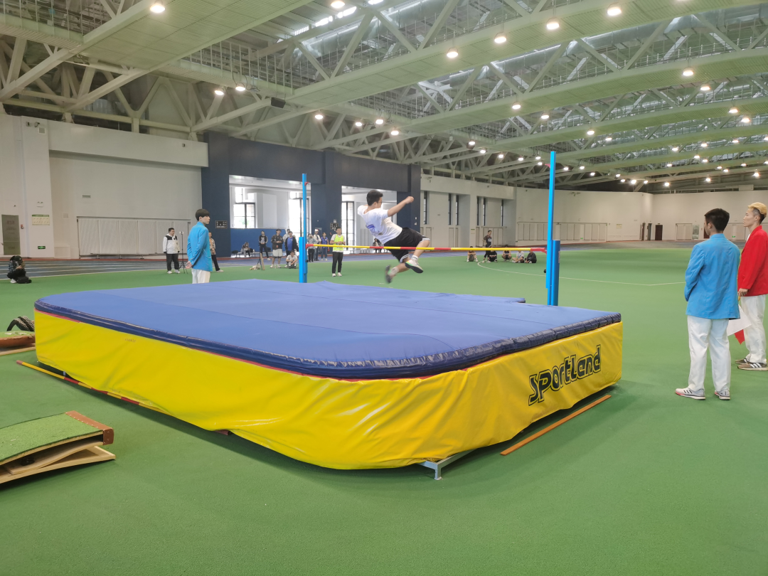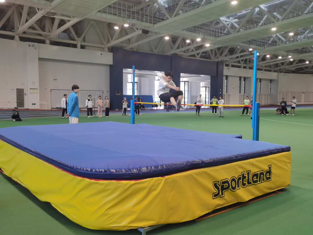 在跳高项目中,公司的参赛同学发挥出色,敢于挑战自己。