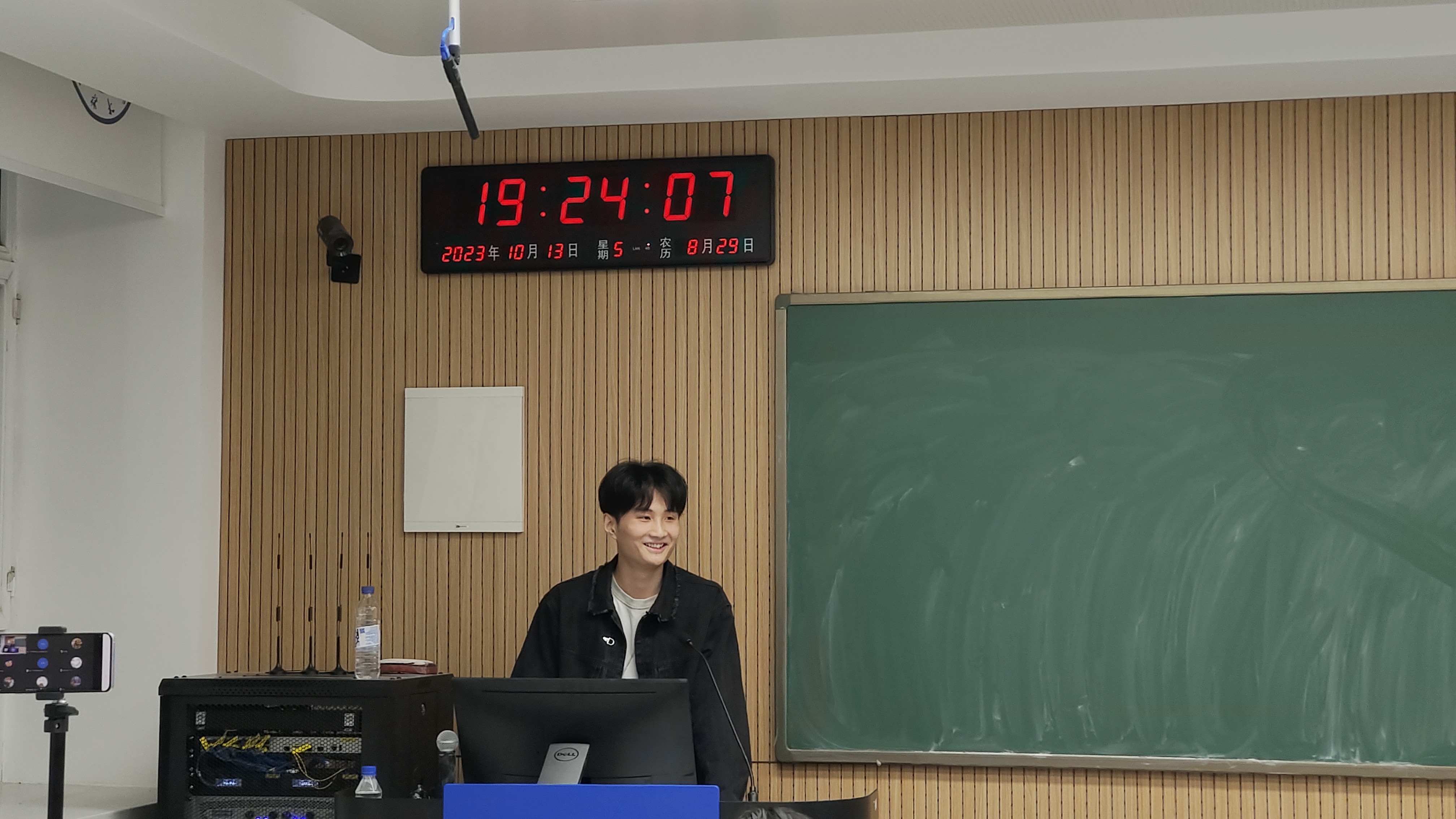 张徐钲同学用表格清晰地列出他参与夏令营的情况,并就夏令营活动中“入营、参营、考核”这三大节点展开详细介绍,使同学们对夏令营的整体情况有了大概了解。