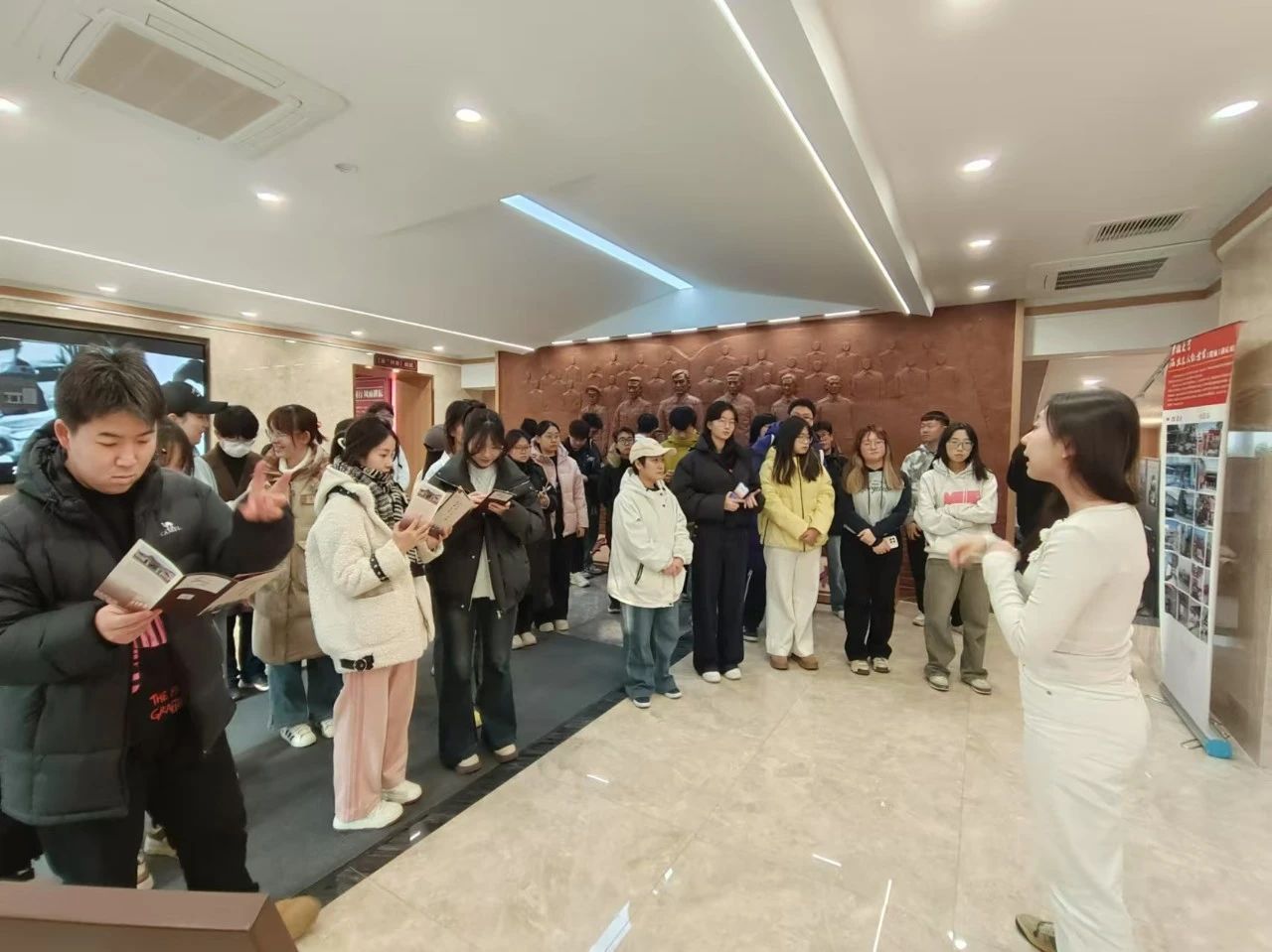 初冬十一月,秋意渐消,晴空之下暖阳朗照,泛黄的树叶翩翩飞舞。太阳集团tyc539的36名入党积极分子在贾子一老师的带领下共同前往太阳集团tyc539名人馆参观。