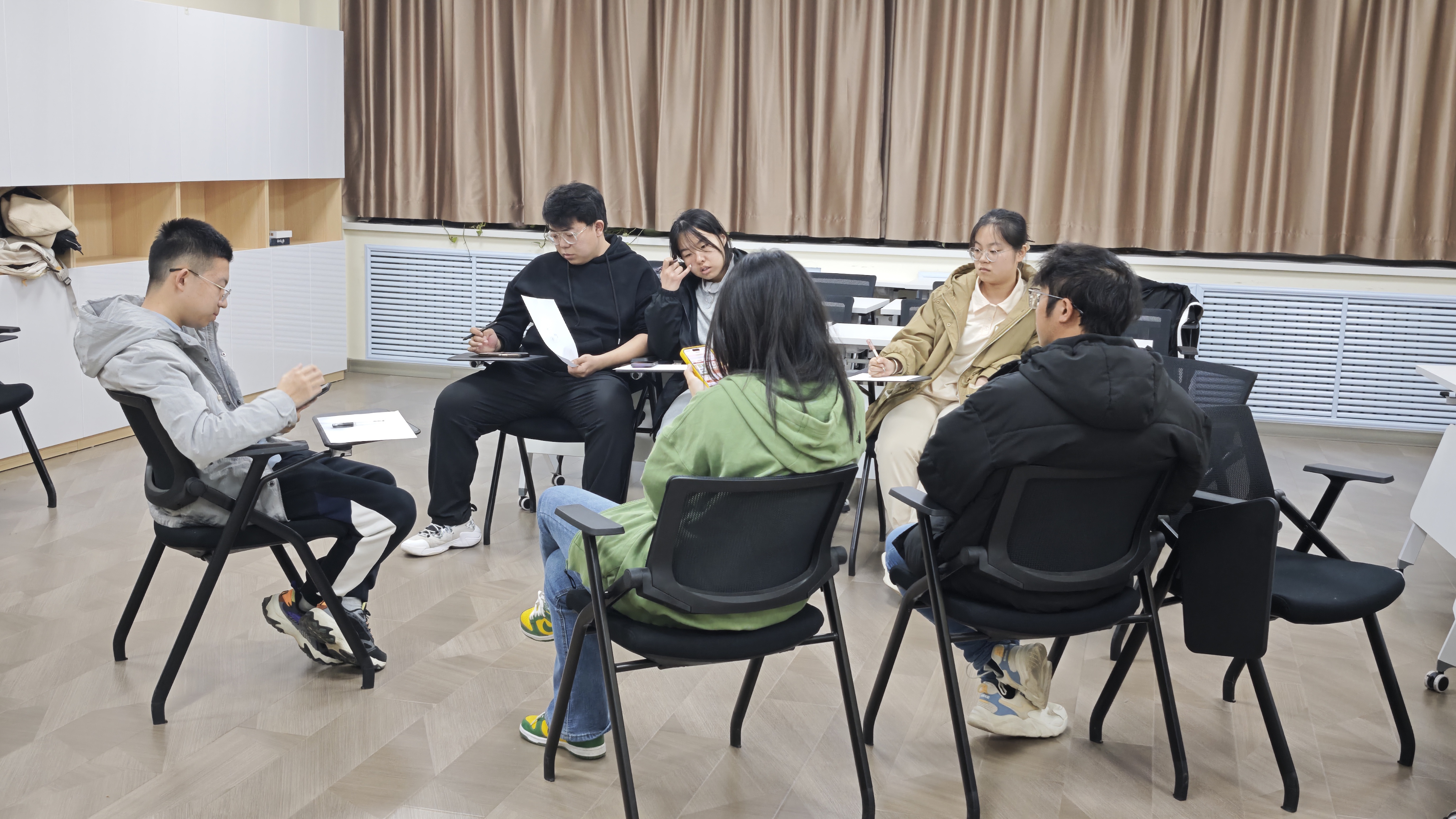 首先是暖身环节,同学们在主持人的组织下通过“大风吹”等小游戏做简单自我介绍,鼓励同学们互相了解,激起了同学们的热情。