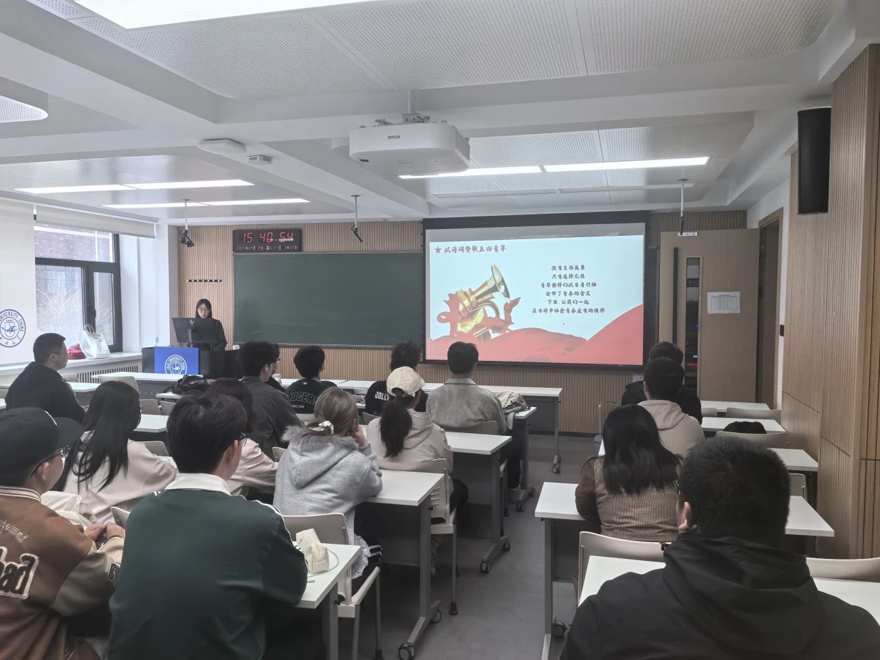 4月16日,2024级2班于前卫南区逸夫教学楼206举办了“传承五四薪火,担当时代使命”主题团日活动。团支书为同学们阐述学习五四精神的重要性。紧接着,全体同学共同观看了经典电影《无问西东》,观影结束后,大家展开了热烈的讨论,分享自己对影片中所体现五四精神的理解,从对自我价值的追寻到对家国责任的担当,拓宽了对五四精神的认知维度。同学们对弘扬践行五四精神有了更深刻的认知和体会。随后,在五四精神知识问答竞赛环节中,同学们沉稳应对,展现出扎实的知识储备,现场气氛热烈。五四精神的种子,正逐渐生根发芽。