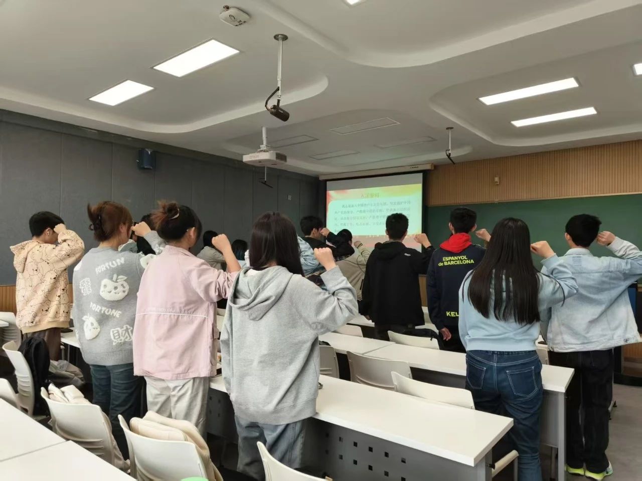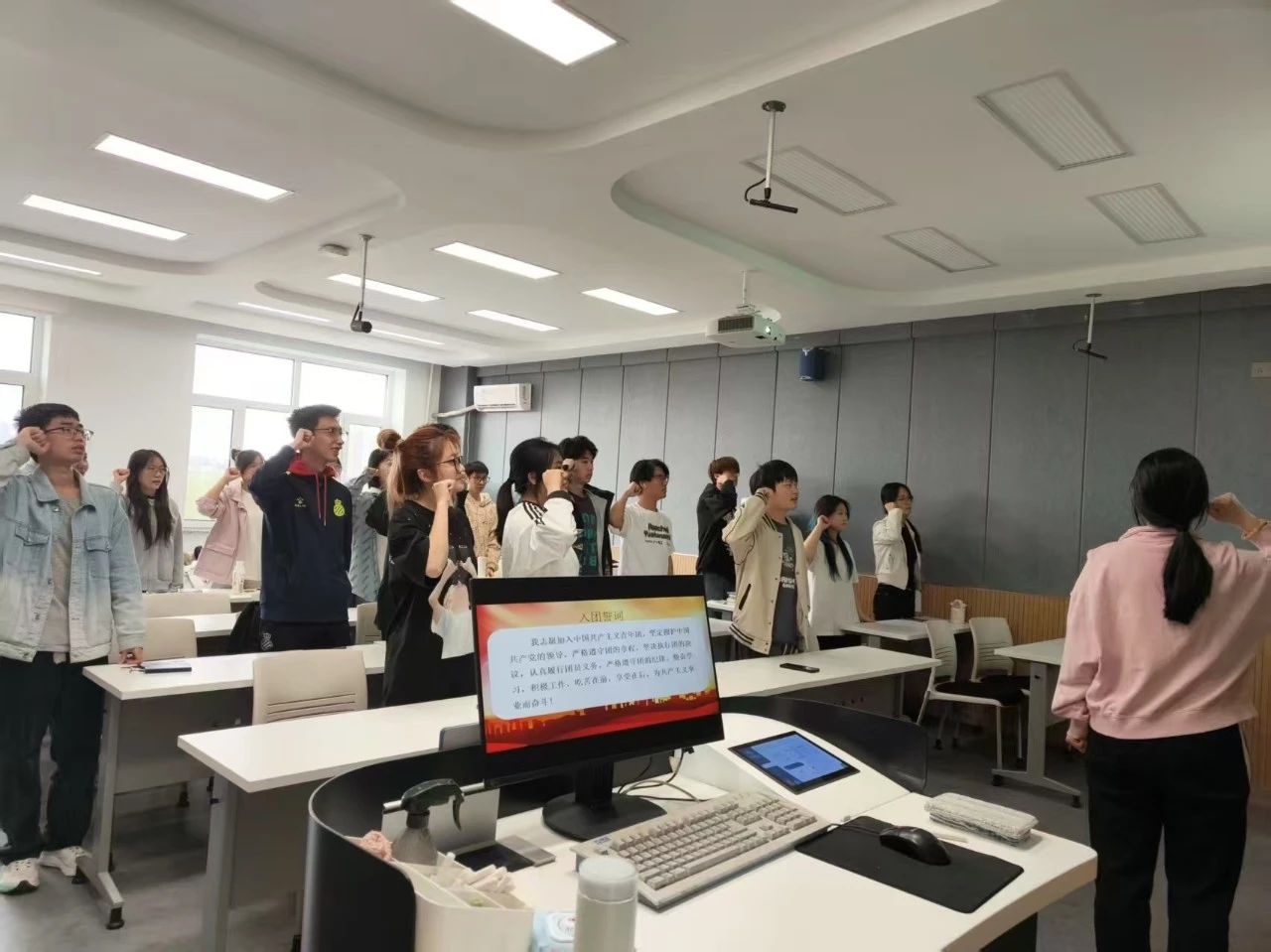 “我志愿加入中国共产主义青年团,坚决拥护中国共产党的领导,遵守团的章程……”2023级2班团支部的团员再次庄重地宣誓,让这字字千钧的誓言,在心中激荡起青春的热血与力量。团员们紧握右拳,目光坚定,声音铿锵有力。这熟悉的誓词,是我们曾经在团旗下许下的庄严承诺,它承载着共青团员的责任与担当,见证着我们对共青团的忠诚与热爱。每一次重温,都是一次精神的洗礼;每一次诵读,都是对初心的叩问。