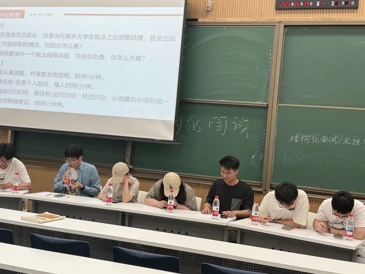 然后,中宏教育资深面试培训专家张鹏志老师为同学们系统讲解了公务员面试的核心要点与应试技巧。张老师以其丰富的教学经验和实战经验,深入浅出地分析了面试中可能遇到的问题,并提供了实用的应对策略。他建议同学们注重面试礼仪和穿着,面试时思考时间不宜过长,答题时抬头并且声音洪亮,论述时不仅要仔细审题,也要接地气避免假大空,适当结合好词好句等,这使同学们受益匪浅。