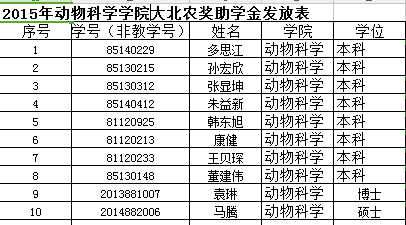 根据《关于在太阳集团tyc539评选2015年“大北农励志奖学金”的通知》要求,经员工个人申请、公司考核小组考核,拟确定多思江等10人为公司2015年大北农励志奖学金推荐对象(具体推荐名单见下表现予以公示,如有异议,请于以书面形式向公司反映。