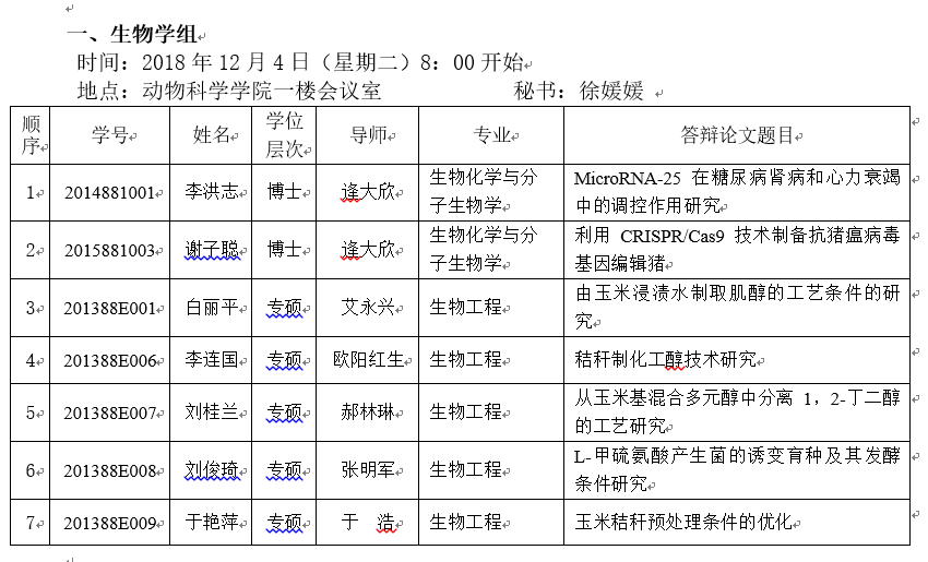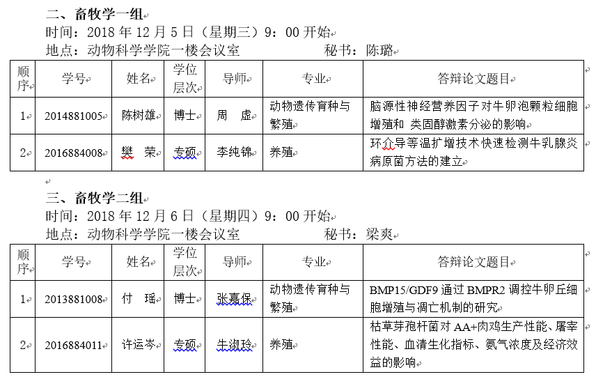 2018年下半年研究生学位论文答辩安排