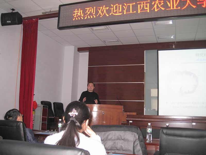 2015年1月24日和25日,中国农业科公司北京畜牧兽医研究所“973”首席科学家、国家杰出青年科学基金获得者李奎教授和江西农业大学猪遗传改良与养殖技术国家重点实验室副主任、教育部””创新团队带头人任军教授,先后来到公司进行学术交流访问,并分别为公司师生做了题为“应用品种间发育比较解析猪产肉性状形成的调控机制”和“全基因组重测序揭示中国地方猪环境适应性的分子机理及可能的属间杂交现象”的精彩学术报告。