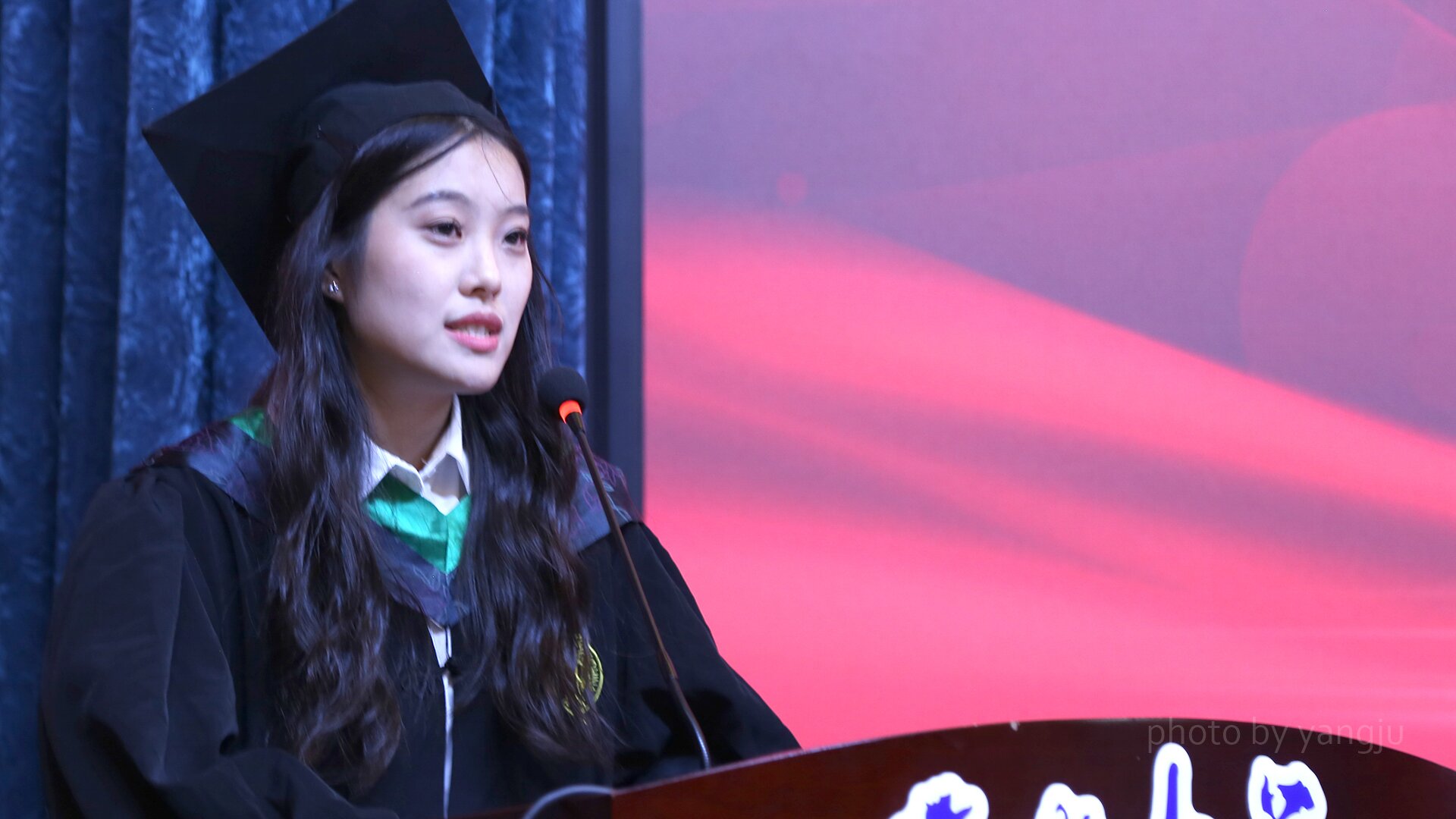 本科生毕业生代表、2019级动物科学专业王子娇同学以及毕业研究生代表、2018级畜牧学学科郑毅同学发表毕业感言。他们回顾了在吉大的求学之路,表达了对母校和老师的感恩之情与惜别之意,并表示在毕业后,将传承“求实创新、励志图强”的校训精神和“厚德笃行,创新致远”的院训精神,承担起新时代青年责任,将在校期间所学应用到实践中,为国家建设注入青春力量。