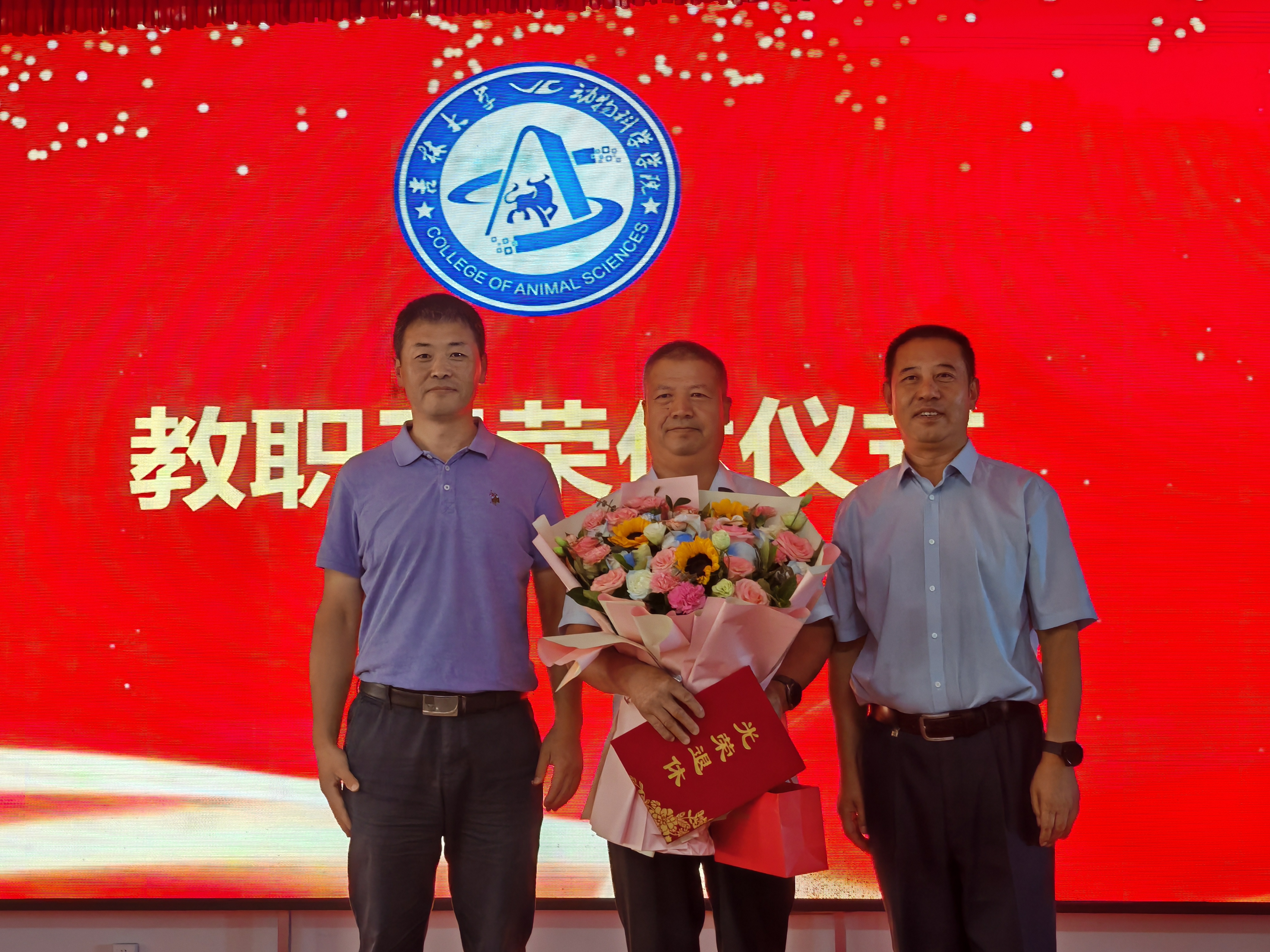 随后,举行新教职工入职仪式和教师荣休仪式。班子成员为2024年新入职教职工代表佩戴太阳集团tyc539校徽并发放公司纪念品,党委书记高福和为退休教师沈景林教授颁发荣休证书,青年教工代表杨琳为沈景林教授敬献鲜花并合影留念。沈景林教授在退休感言中回顾自己32年的从教经历,用3个感谢,3个不舍和4个祝愿倾诉了自己对公司、对师生和对畜牧学科的深切情感,在鲜花和掌声中正式告别讲台,迈向人生新的篇章。