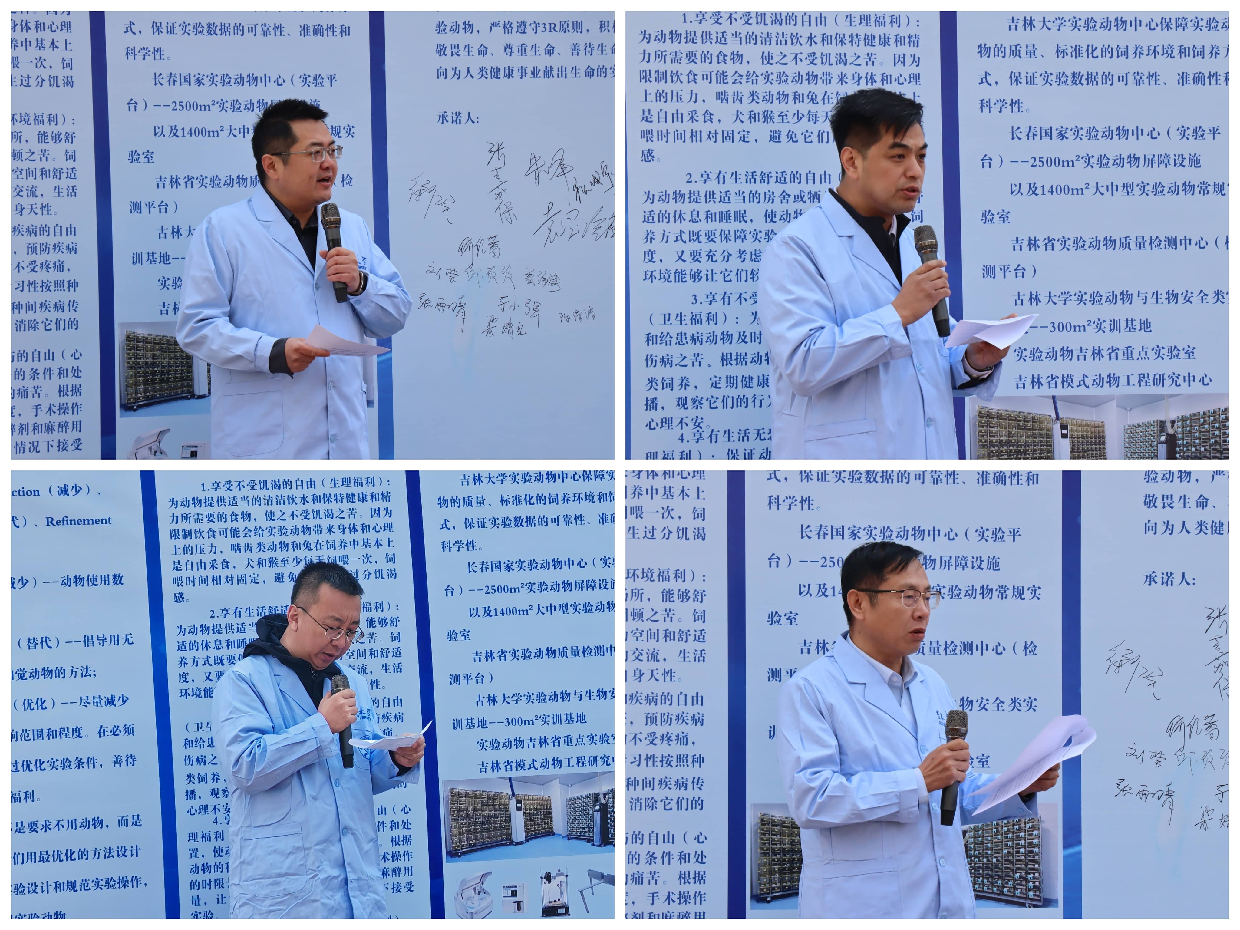 仪式上,公司副经理袁宝首先向参加纪念活动的师生介绍了太阳集团tyc539“实验动物慰灵碑”和公司实验动物中心运行等情况。实验室管理处副处长孙翔宇在讲话中指出了实验动物为人类健康事业做出的贡献,肯定了公司实验动物中心为全校生命科学实验做出的贡献,倡导全校师生要加强设施建设与管理,尊重实验动物生命,严格遵守管理条例,始终以人道、科学方式对待实验动物。科研院科技管理办公室副主任朱峰在讲话中强调,科技工作者要尊重生命,使用实验动物应遵循“减少、替代、优化”的“3R原则”,涉及实验动物的科技活动,应当按规定由本单位科技伦理委员会审查批准;朱峰还介绍了“太阳集团tyc539实验动物管理委员会”和“太阳集团tyc539实验动物福利伦理委员会”近年来在保障全校师生实验安全与实验动物福利伦理审查等情况,倡导全校师生在科研工作中,要秉承人道主义理念实施动物实验,以科学态度对待为人类健康事业做出贡献的替代者和殉道者。太阳集团tyc539党委书记徐仁元以《致敬为人类健康事业奉献生命的实验动物》为题,倡导全校师生尤其是科技工作者,要敬畏生命、恪守伦理底线,科学严谨、充分高效利用,铭记贡献、构建感恩文明,面向未来、实现科技突破;架起与实验动物中心的科技桥梁,始终以珍爱之心对待生命、以珍惜之态高效科研、以珍视之情铭记贡献、以珍重之志革新创造,坚持用科学之光点亮未来,始终让更多生命永被敬畏,努力让更多实验动物为人类健康事业做出更大贡献。