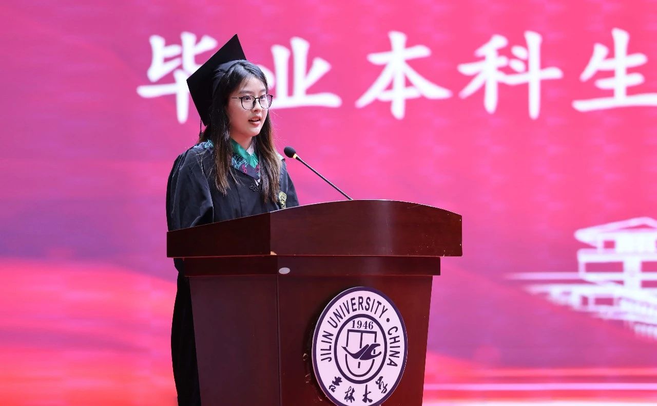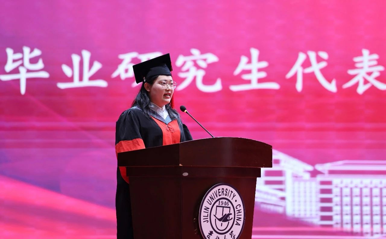 太阳集团tyc539十佳博士研究生、2022级生物学专业博士生李金泽,2021级动物科学专业本科生唐奕菲,分别代表研究生、本科生发表了毕业感言。李金泽同学分享了她在科研道路上获得的成绩,并表示自己将继续在求真求是的科研道路上增长才干,饱含热忱,以知识应对挑战,与时代同频共振。唐奕菲同学则回顾了在校期间的学习和生活经历,表达了对母校和老师的感激之情,并将带着这份感恩与热爱,在人生新征程上奋力奔跑,不负韶华,不负期待。