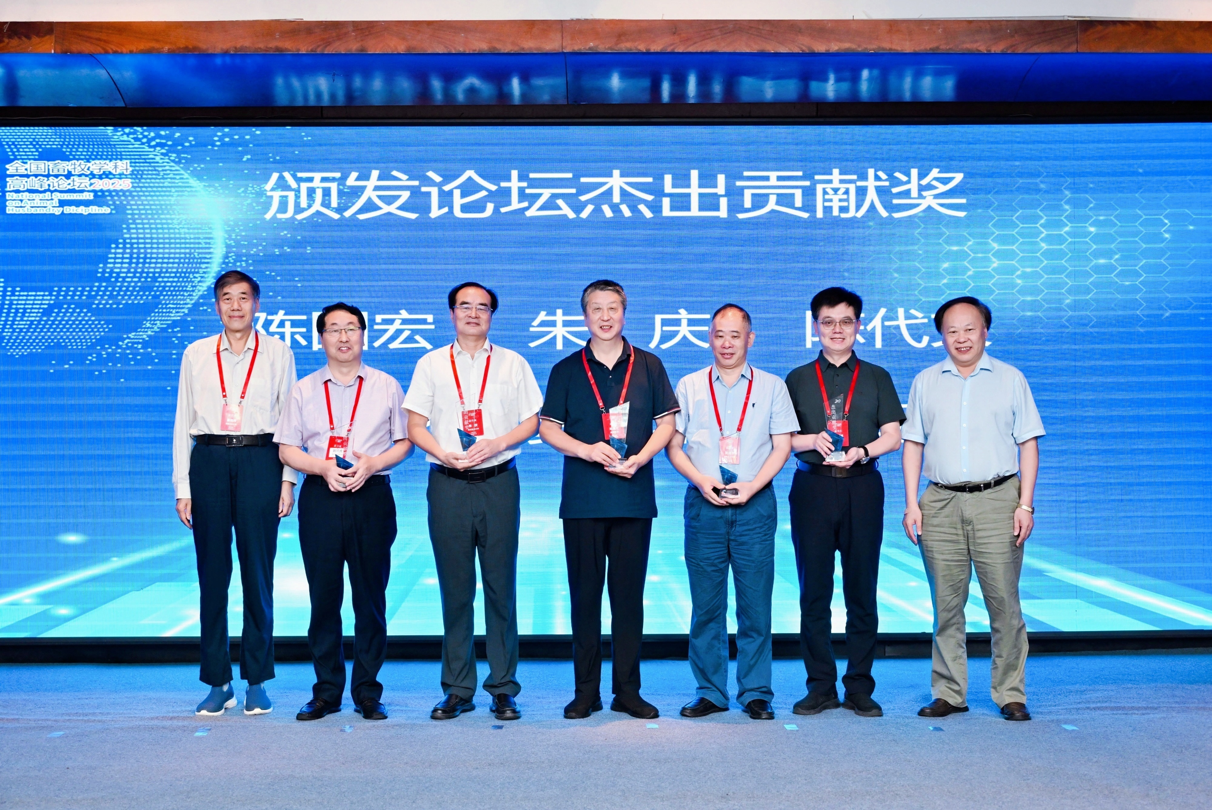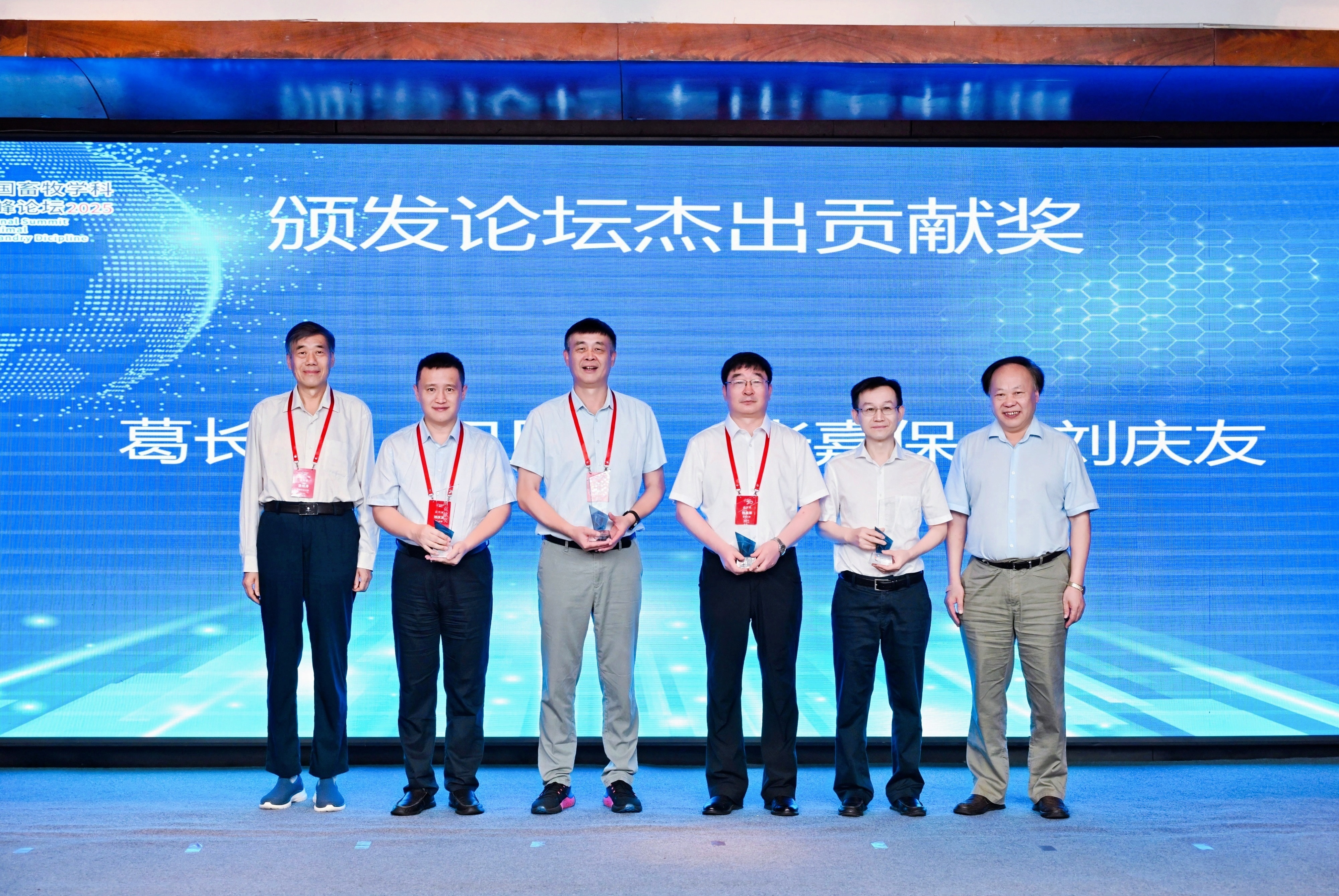自2005年首届动科公司经理联席会至今,论坛以走过了20年的历程,逐步发展为全国畜牧学科的高水平交流平台。为感谢20年来论坛秘书处各位成员的辛勤工作,本届高峰论坛专门安排了颁奖环节。全体参会代表向论坛秘书处的历届成员致敬,中国工程院院士、中国农业大学谯仕彦教授和康相涛院士为“论坛杰出贡献奖”获得者颁奖。最后,论坛第一届秘书长、扬州大学原副董事长陈国宏教授代表获奖人员致答谢词。