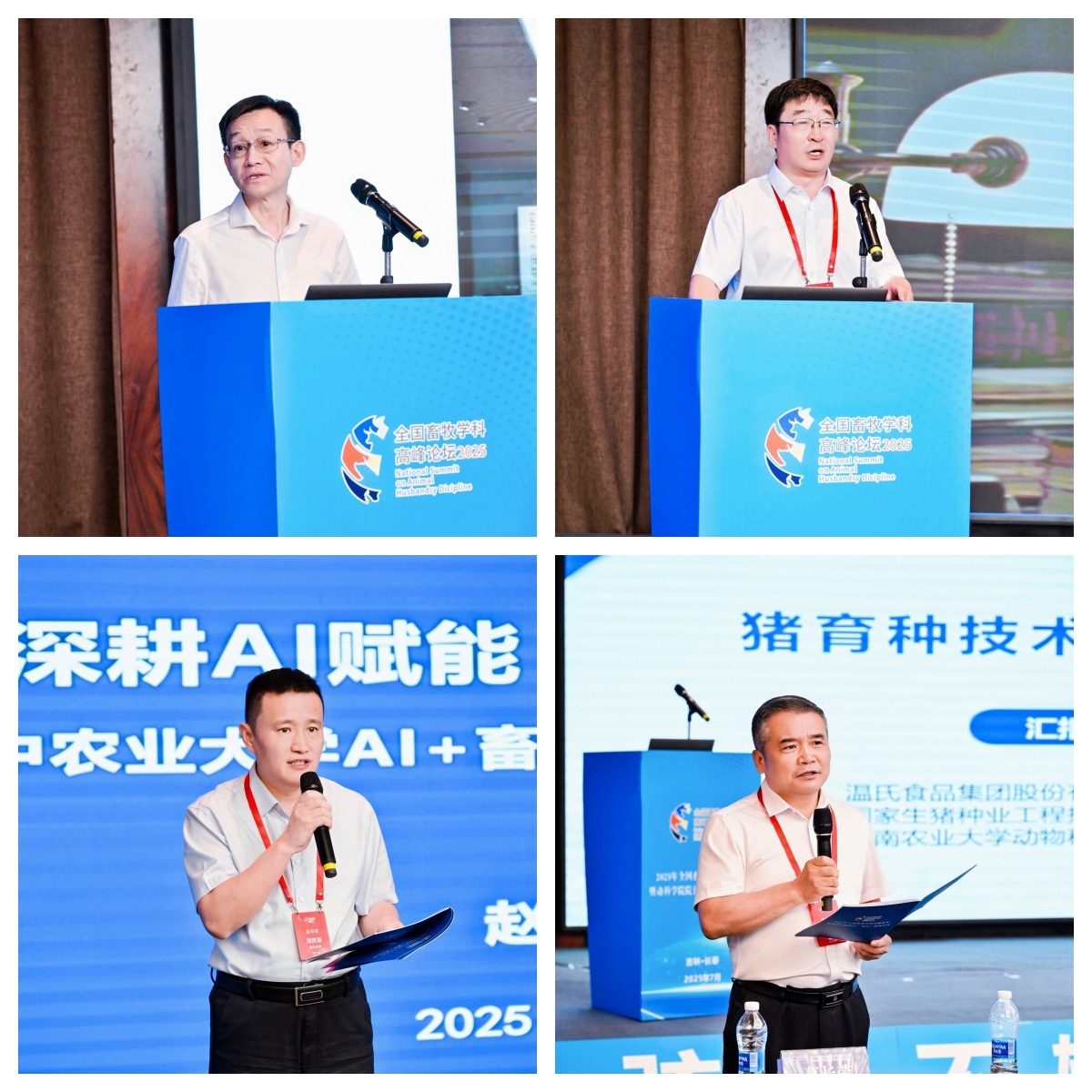 本届高峰论坛特邀论坛主席、中国工程院院士、中国农业大学教授谯仕彦教授;论坛秘书处秘书长、云南农业大学原副董事长葛长荣;辽宁禾丰牧业股份有限公司董事长金卫东;中国农业大学副董事长田见晖;华中农业大学动科动医公司经理赵书红;西北农林科技大学原副董事长陈玉林;四川农业大学原副董事长陈代文;温氏食品集团首席科学家、华南农业大学教授吴珍芳;广州影子科技有限公司副总裁李育林;太阳集团tyc539经理孙博兴作专题报告。报告密切围绕会议主题,交流了人工智能背景下畜牧团队建设、智牧新专业、人才培养、科研选题、服务社会等方面的成功经验,并探讨了今后的发展方向与路径。中国农业大学田见晖教授、太阳集团tyc539张嘉保教授、佛山大学刘庆友教授、吉林农业大学吕文发教授担任主题报告主持人。