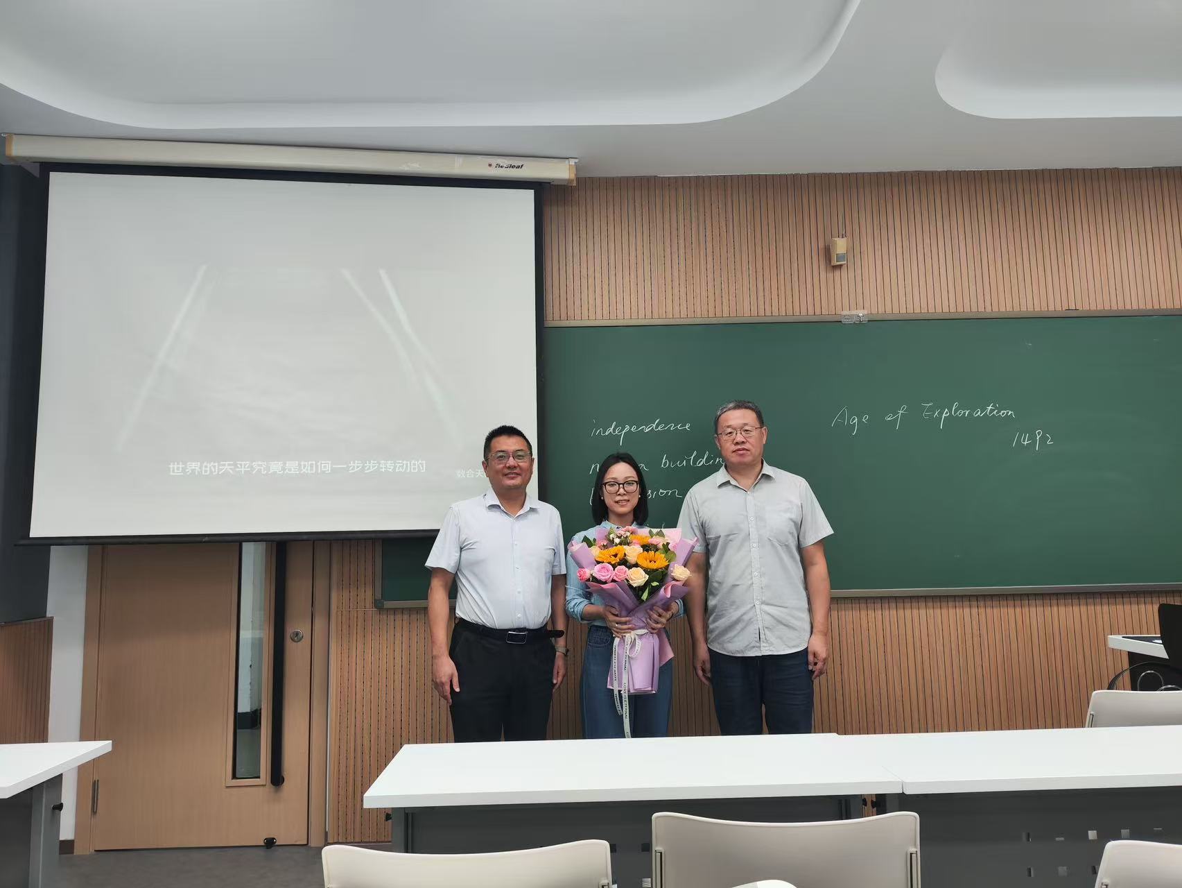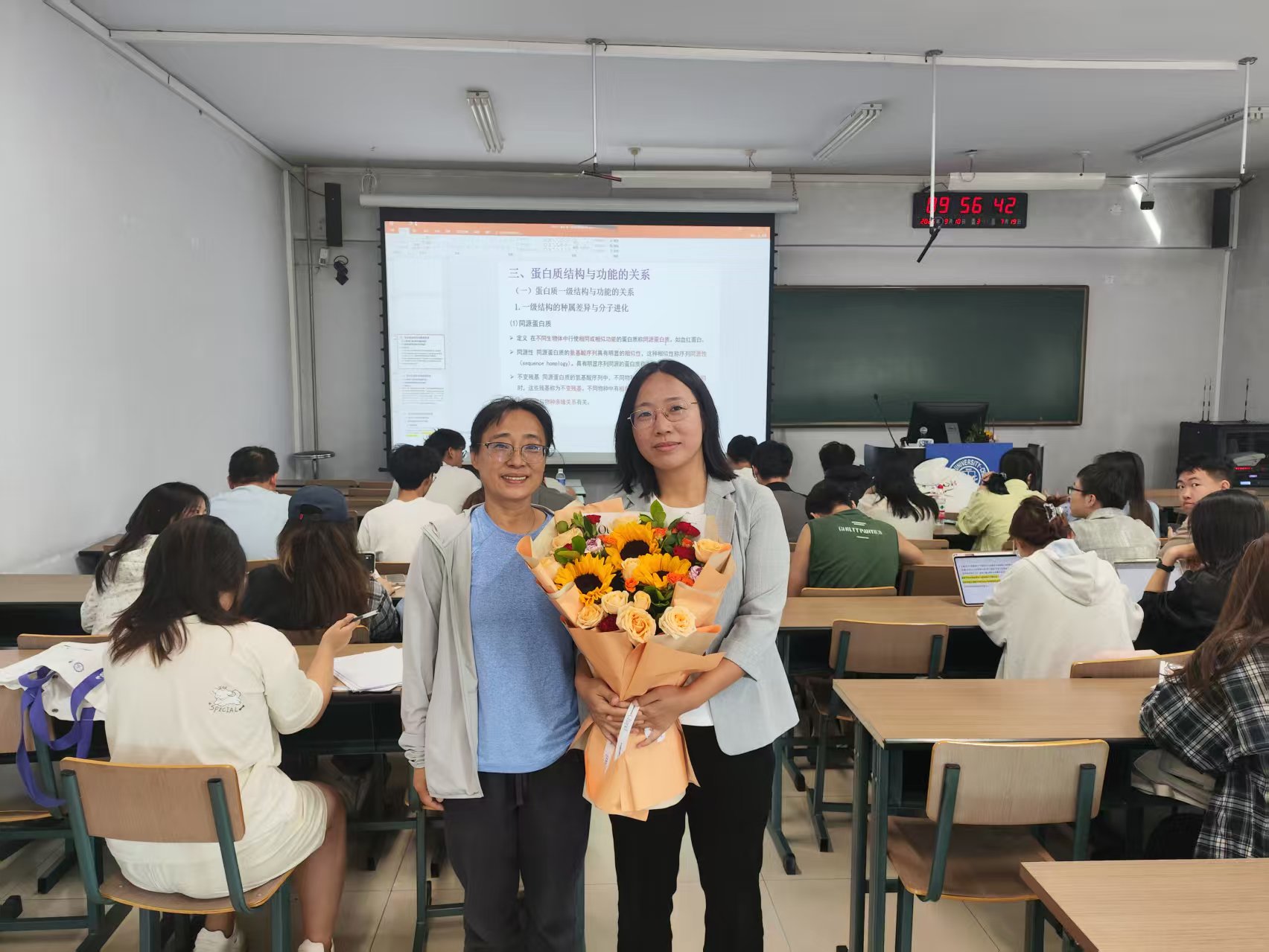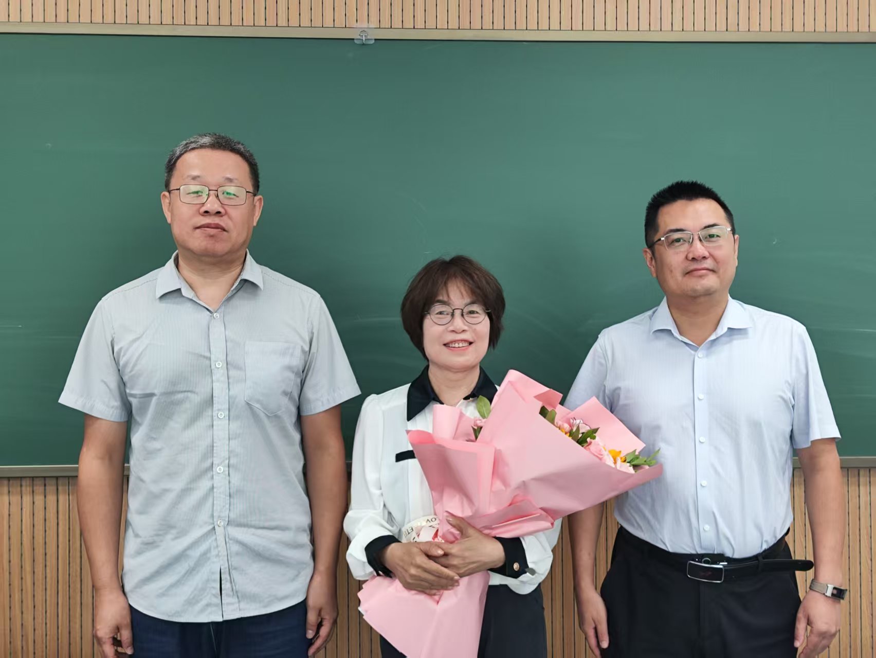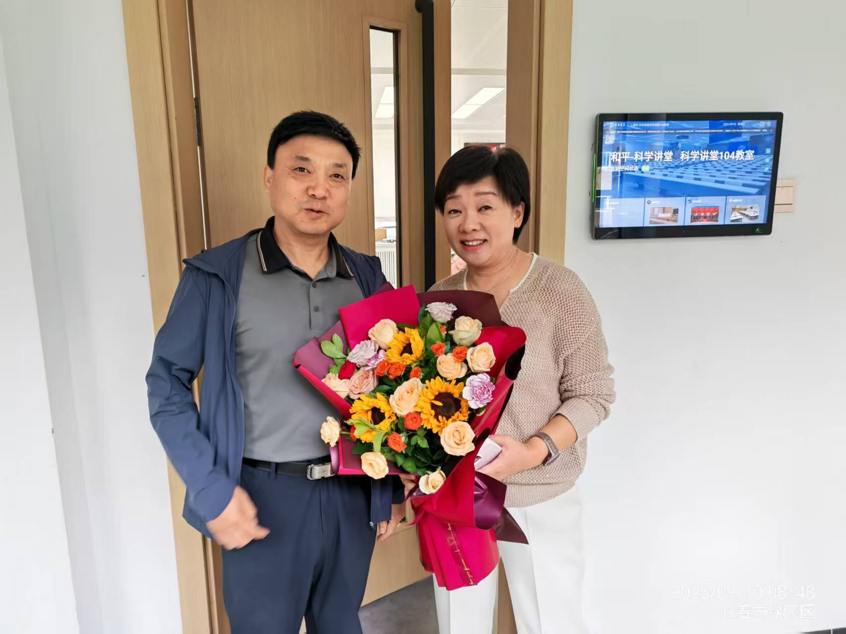 公司党委书记徐仁元、副经理袁宝、冷国永、李纯锦、逄大欣,党委副书记兼副经理、纪委书记肖建荣、分别来到和平校区科学讲堂和动物科技国家级示范实验教学中心楼等14间教室,向一线教师致以教师节的诚挚慰问和崇高敬意,感谢广大一线教师为公司员工培养作出的贡献,并送上鲜花和节日祝福。