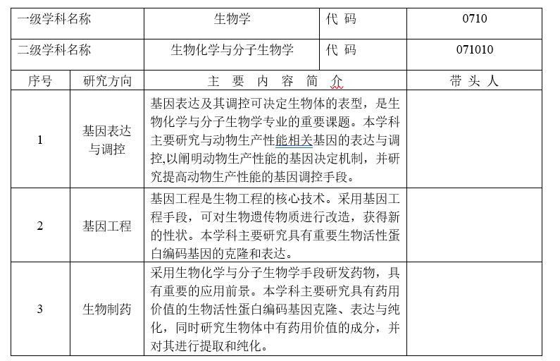生物化学与分子生物学(硕士)研究方向及主要研究内容介绍