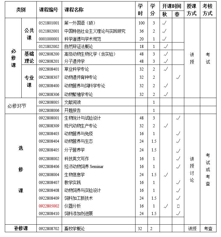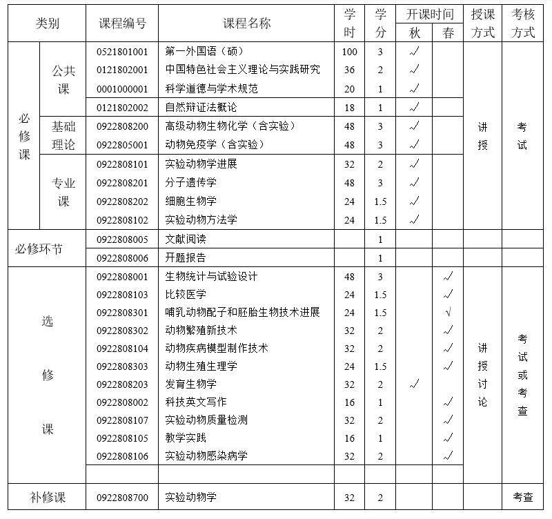 在学期间,必须修够32学分。其中必修内容23学分,含必修课21学分,必修环节2学分(文献阅读1学分,开题报告1学分)。考试成绩合格方可获得学分,考试采用百分制,60分合格。