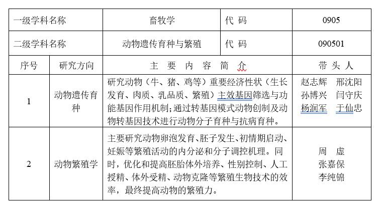 动物遗传育种与繁殖(硕士)研究方向及主要研究内容介绍