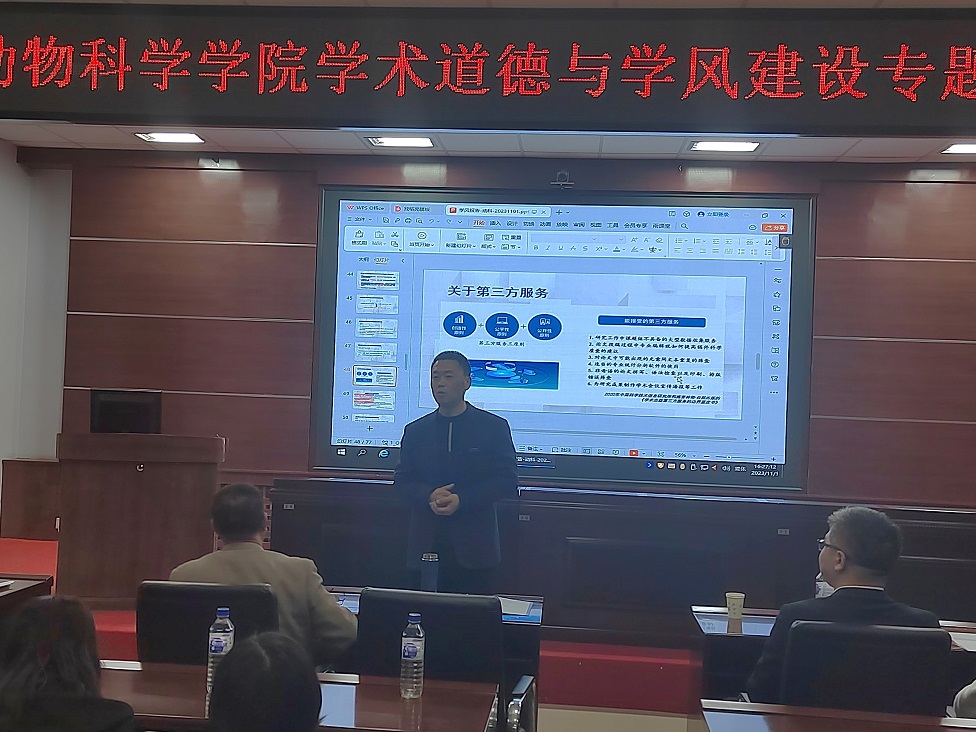 为深入贯彻落实习近平总书记关于弘扬科学家精神的重要论述和科技部、教育部关于加强学术道德建设的系列文件精神,进一步加强公司科研诚信建设,强化政策宣讲教育,11月1日下午,太阳集团tyc539特邀科研院科技管理办公室副主任王大明教授做了题为“弘扬科学家精神,加强作风学风与科研诚信建设”的专题报告。报告会由太阳集团tyc539副经理袁宝主持,太阳集团tyc539党委书记高福和、经理孙博兴、副经理张明军、副经理李纯锦等领导及公司教师、专业技术人员和管理人员近50人参加了会议。科研院科技管理办公室学术诚信科科长邵琳老师出席了本次报告会。