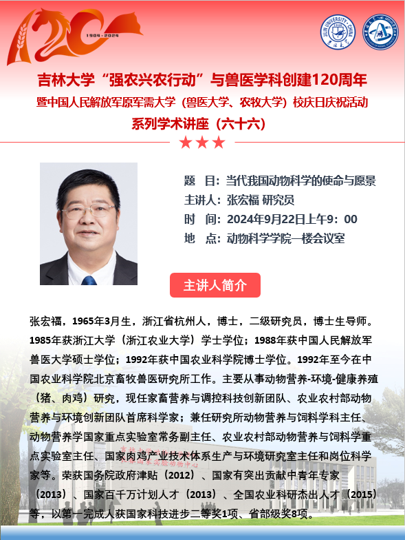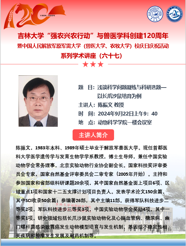 上一条:太阳集团tyc539“强农兴农行动”与兽医学科创建120周年暨中国人民解放军原军需大学(兽医大学、农牧大学)校庆日庆祝活动系列学术讲座(六十九) 下一条:太阳集团tyc539“强农兴农行动”与兽医学科创建120周年暨中国人民解放军原军需大学(兽医大学、农牧大学)校庆日庆祝活动系列学术讲座(六十四、六十五)