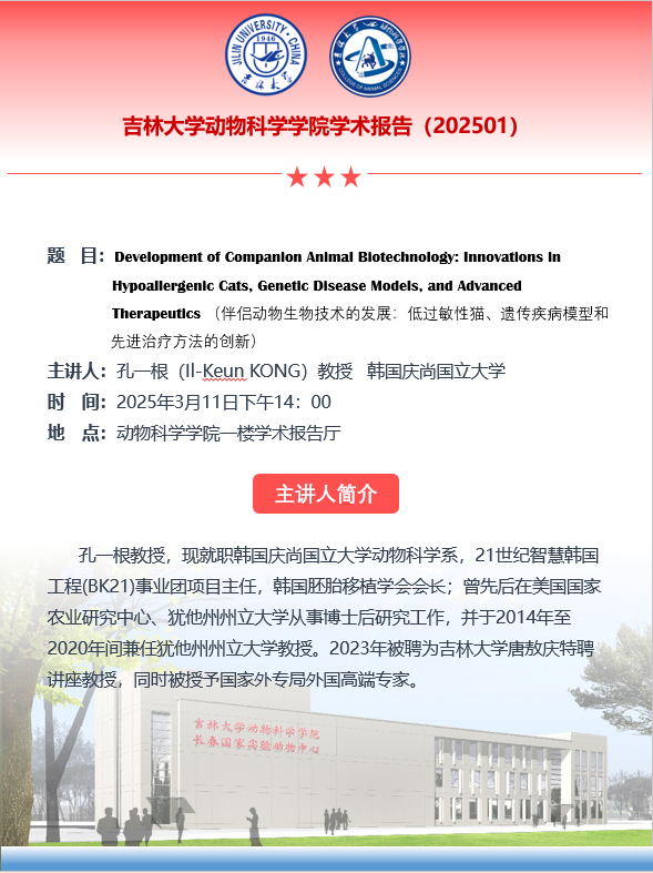 上一条:太阳集团tyc539学术报告(202502) 下一条:太阳集团tyc539“强农兴农行动”与兽医学科创建120周年暨中国人民解放军原军需大学(兽医大学、农牧大学)校庆日庆祝活动系列学术讲座(九十四—九十七)