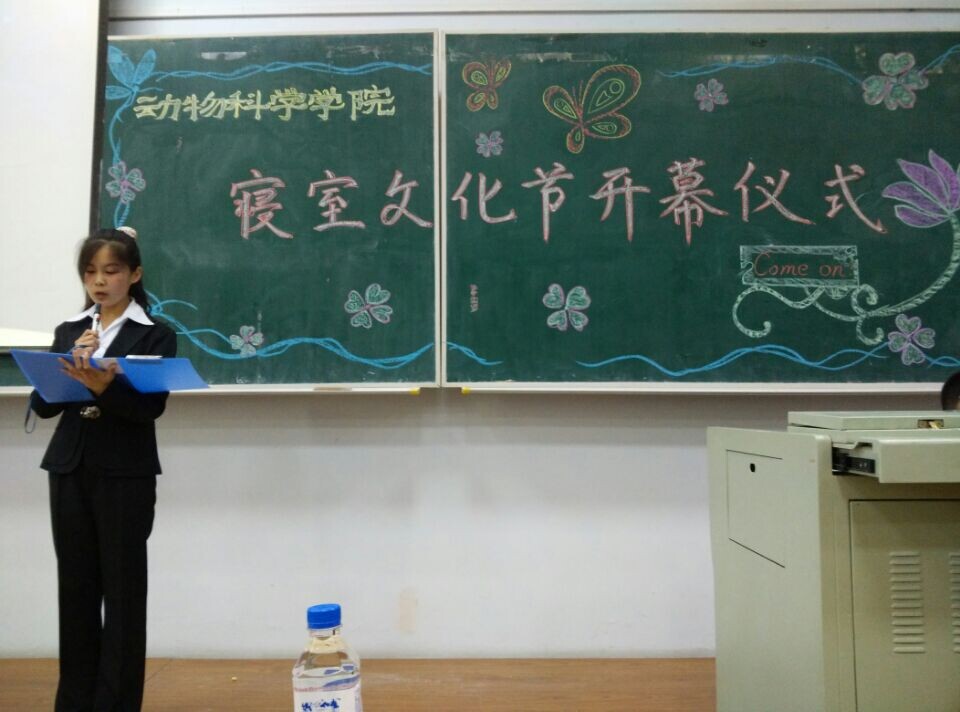 首先,主持人配合着生动精彩的PPT为大家介绍了寝室文化节的具体活动方案及活动形式:寝室门牌设计大赛,寝室废物利用DIY,寝室大乱斗,逐梦青春摄影大赛。